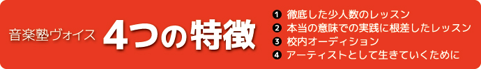 「徹底した少人数制のレッスンのため入塾はオーディション制としていますが、重視するのは 歌唱力や演奏力ではなく『音楽に対する一途さと苦しむ覚悟』。楽器に触れたことがなくても、 ライブ経験が全くない初心者でも、その姿勢があれば誰しも可能性があります。」